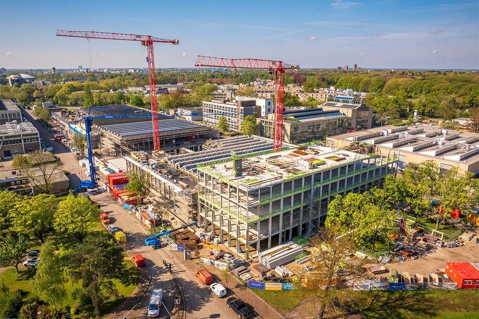 Conrads: “Omdat we praktisch naast elkaar zitten op kantoor, kunnen we heel snel schakelen. Dat is fijn, want zelfs nu we al met de uitvoering bezig zijn, wijzigt het ontwerp nog regelmatig. Pas moesten kolommen van 60 bij 60 centimeter bijvoorbeeld ineens 60 bij 80 centimeter worden, omdat dit architectonisch mooier was in het gebouw.” Van Hulst: “Op de dag dat zo’n wijziging binnenkomt, kunnen wij meteen nieuwe productietekeningen maken en de nieuwe ontwerpen direct inplannen om te storten. En dat willen we ook, want we hebben dezelfde doelstelling: dat het buiten vlekkeloos verloopt.” Conrads: “Bij een externe partij zou je dan eerst nog overeenstemming moeten zoeken over de prijs. Maar wij werken in hetzelfde belang en willen koste wat het kost voorkomen dat het werk buiten stilvalt, dus gaan meteen over tot actie.” Van Hulst: “We hadden de kolommen binnen 5 werkdagen aangepast en wel op de bouwplaats.”